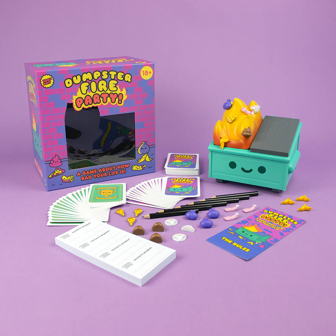 - Dumpster w/ detachable magnetic flame and hinged lid