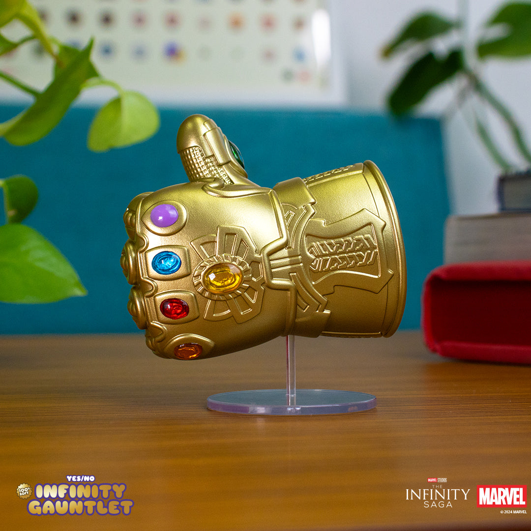 Having a good day? Did you just save the universe? it's the Yes/No Infinity Gauntlet from Marvel Studios' Infinity Saga. Display the Gauntlet as a thumbs up… OR did you just fail to stop half the universe from being snapped out of existence? Flip it over for a thumbs down! Comes with two stands for whichever mood you’re feeling.