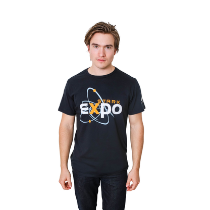 Tony Stark - or Iron Man, as you may know him, - is all about inventing for the future, and the future of your comfort incudes these Stark Expo Graphic T-Shirt! The Marvel Iron Man Stark Expo Graphic T-Shirt Is all black shirt made of a 100% cotton that is super comfortable and durable. The Stark Expo Mens Apparel features a bright, bold, soft hand print graphic on the center of the shirt with the "Stark Expo" Printed on the Left Sleeve As well.