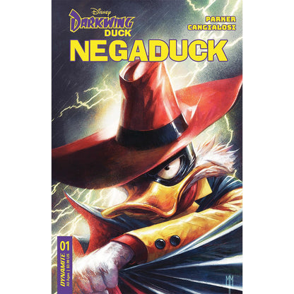 'I am the screeching fingernail on the chalkboard of justice. I am the sour ball in the candy jar of goodness. I am NEGADUCK!' He's the exact opposite of DD in every way… evil- nefarious- dedicated to stealing lollipops from kids and not helping grandmas across the street! And now- he's ready to begin a reign of crime and terror the likes of which St. Canard has never seen - except… dang it- all of the other villains are ripping off his ideas! What's a criminal mastermind to do when the city's thick with other criminals- stealing his shine? Why- take his villainy on the road- of course! Written with fiendish glee by arch-author JEFF PARKER and illustrated by the suspiciously talented CIRO CANGIALOSI- Negaduck features a regular rogues' gallery of cover artists- including JOSHUA MIDDLETON- JAE LEE- TRISH FORSTNER- and a special Whiteout homage cover by that series' co-creator- STEVE LIEBER!