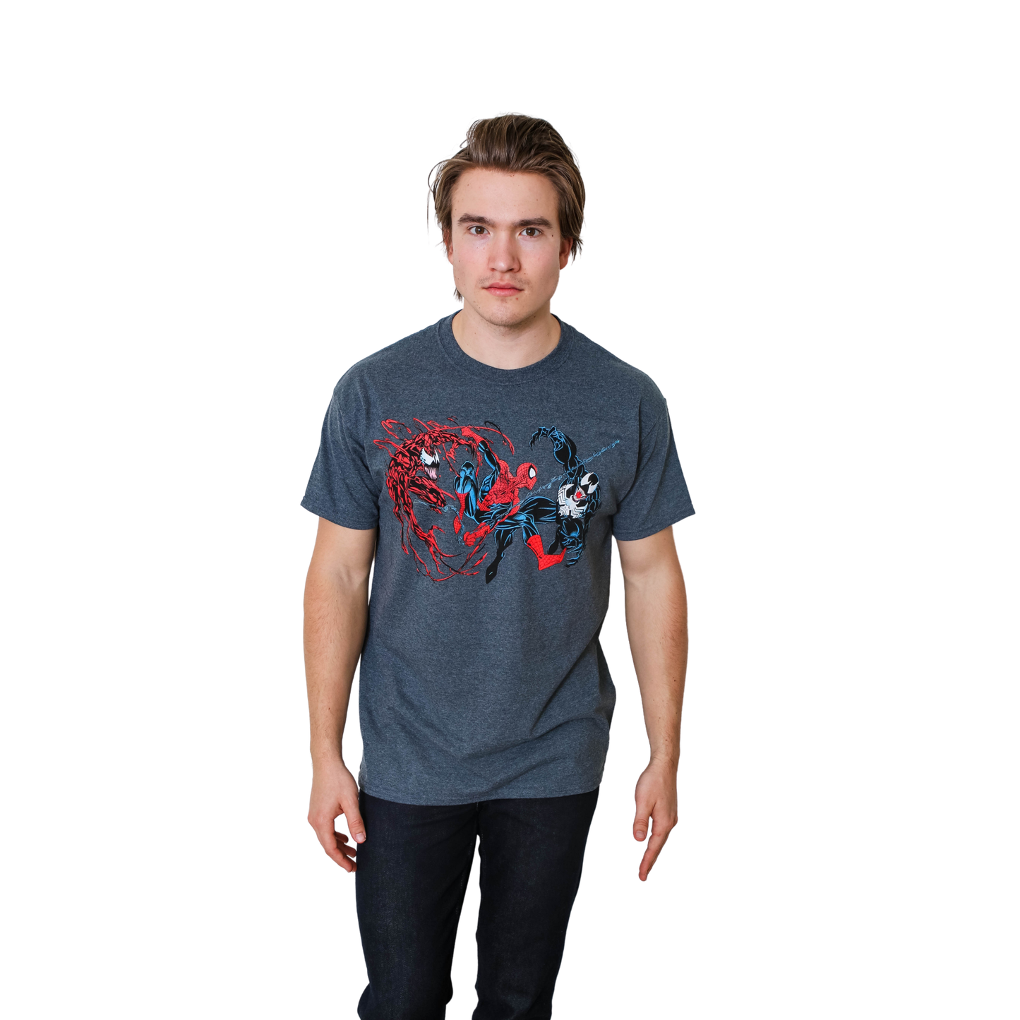 QUALITY MATERIAL: Made of cotton and silk -men long sleeves tshirt super soft & breezy impeccable cut providing unparalleled comfort while you're running a 5K or just running errands. PRINT & COLOR: Marvel t-shirts for men designed with professional printing for long-lasting color and print quality to offer you most vivid print that will last better through the wash. MARVEL APPROVED: Mens t shirt officially licensed by Marvel & The Amazing Spider-Man Carnage vs Venom features short sleeves and tag less neck. A UNISEX CASUAL TEE: This basic unisex graphic white tee especially has just the right weight to make it feel like a tee shirt- Go there for your everyday crewnecks in your go-to colors.